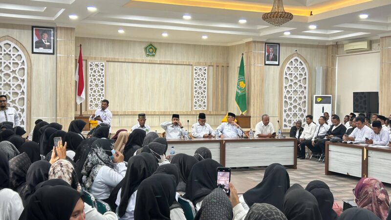 Banda Aceh | wartasabang.com — Kantor Wilayah Kementerian Agama (Kanwil Kemenag) Aceh menyatakan komitmennya untuk memperjuangkan nasib guru honorer madrasah swasta di Aceh ke Kementerian Agama Pusat di Jakarta. Langkah ini diambil menyusul audiensi yang digelar oleh Forum Koordinasi Honorer Madrasah Swasta (Forkomas) Aceh di Aula Kanwil Kemenag (21/10).